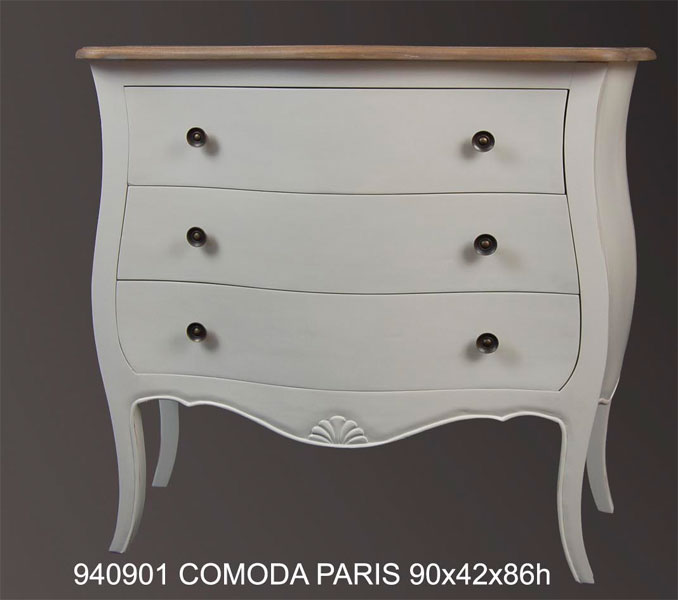 Os presentamos la serie de muebles Paris, la madera en la que están fabricados estos muebles es madera tropical, equivalente al fresno español en el dibujo de su veta y color se asemeja bastante a la madera del roble, por la fabricación artesanal de estos muebles hace que sean piezas únicas, las posibles imperfecciones forman parte de su carácter y belleza, sus acabados puede ser bicolor ( madera y blanco) o totalmente blanco, el color blanco de esta serie es un blanco roto, en el acabado bicolor la parte de arriba, el sobre es en color roble y el resto en blanco, ambos vienen con un acabado distress este le da un toque moderno que le permite encajar en todo tipo de decoraciones.