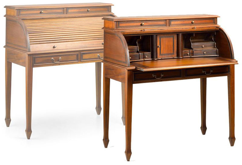 Dentro de nuestra colección de mueble Vitange, hemos seleccionado una serie de escritorios o bureaus en línea clásica, fabricados en madera de caoba y con terminación colonial, esta línea de escritorios es muy decorativa, disponemos de un modelo mesa de despacho Chippendale clásica con talladuras, otro modelo secreter Davenport con cajones ocultos, diferentes tamaños de bureaus con persiana y un modelo pies de cruz plegable con sobre de piel, os adjuntamos una imágenes para mas información visitar nuestra Web.
