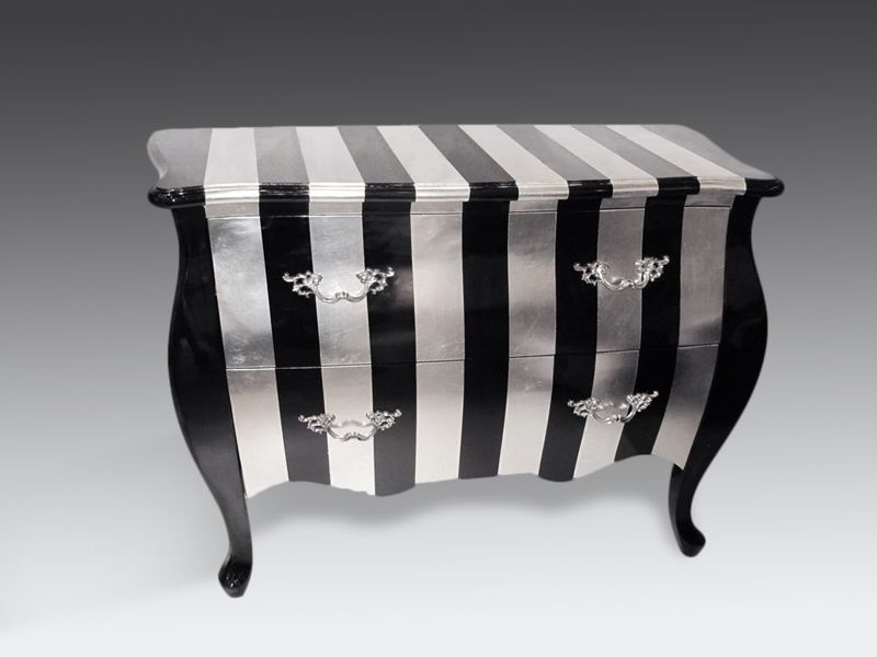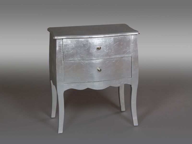 Últimamente como ultima moda nos están llegando una infinidad de mobiliario en color plata, como se tiene previsto que estas líneas van a ser las que marquen el mercado a lo largo de este año, hemos querido introducido una serie de piezas sencillas pero muy decorativa en este acabado, disponemos de modelos combinados de plata y negro o de plata y blanco, ademas de los totalmente acabados en color plata, esta serie esta acabada en madera maciza las partes del armazón y luego se combina la madera DM en las partes mas lisas, os adjuntamos una imágenes de esta colección para mas información visitar nuestra Web.