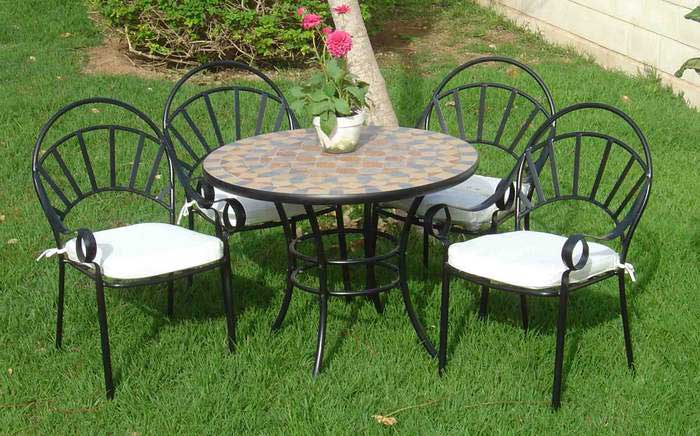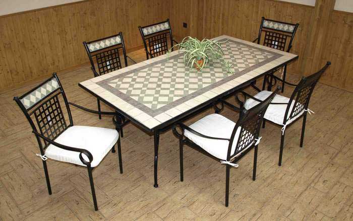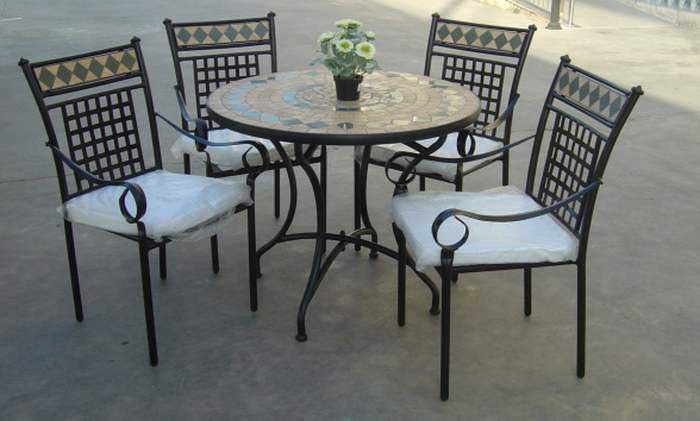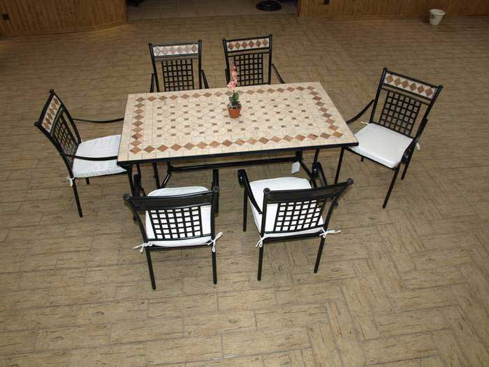 En nuestra sección de mueble de terraza y jardín dentro de la subseccion de muebles forja, hemos introducido una serie de conjuntos en forja y cerámica para exterior, todos esta fabricados en tubo de acero hueco y con acabado en color negro ademas se incluyen los cojines en loneta básica, en esta nueva línea disponemos de mesas de varios tamaños y diferentes sillones, adjunto os incluimos unas imágenes para mas información visitar nuestra Web.