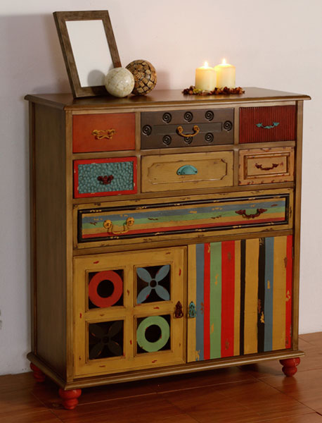 Para la entrada de hoy en este post, hemos seleccionado una colección de muebles multicolores en diferentes formatos, pertenecientes a la colección Antic Cluter, esta serie de mobiliario esta acabado en madera maciza de pino el armazón y las partes lisas en madera de FDM pintada en diferentes colores, son muebles con un diseño original y diferente combinado los colores con diferentes formatos de cajones y tiradores, dando un aspecto de mobiliario hecho con retajos de un cajón de sastre, si queréis una pieza auxiliar diferente y original esta colección no se os puede escapar, os adjuntamos 6 modelos en imágenes, para ver el resto de la colección visitar nuestra tienda de muebles online artesaniadecoracion.com.