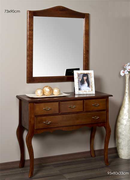 La nueva colección de mobiliario de la serie Beltes esta fabricada en madera de pino atlántico y acabada en color nogal oscuro, esta serie de mobiliario auxiliar que os presentamos dispone de una colección de 15 piezas diferentes en ella se incluyen cómodas, espejos, mesillas, aparadores y muebles para el recibidor, con un acabado en estilo clásico esta colección esta indicada para decoraciones donde se potencia la madera en su aspecto mas solidó, os adjuntamos 6 modelos en imágenes, para ver el resto de la colección os invitamos a visitar nuestra tienda de muebles online artesaniadecoracion.com, también queremos comentaros que en todos nuestros precios esta incluido el IVA y los gastos de envió para la península y Baleares.