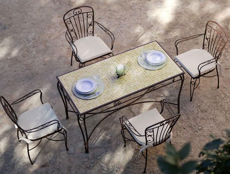 La eterna pregunta cuando queremos decorar nuestro jardín, queremos muebles de forja o muebles de teca, en principio los dos formatos son para el exterior sin problemas, os enunciamos una serie de características que los diferencia dependiendo del grado de conservación que le dediquemos, empezaremos por los muebles de teca, la madera de teca es perfecta para el exterior es mas calida y acogedora, dispone de diferentes formatos en mesas y sillas y requiere un cuidado mínimo, cada 2 o 3 años se debe aplicar una capa de aceite de teca que nutra la madera y la mantenga en su color original, de lo contrario no es que se deteriore pero adquiere un color grisáceo parecido a la ceniza, esto es debido a que pierde la madera sus nutrientes y se oscurece, por lo demás es totalmente resistente, la forja se caracteriza por ser mas fría y minimalista, ideal para recintos o jardines mas reducidos, no requiere ningún tipo de conservación, si con el tiempo se ralla o deteriora la capa superior de pintura que la protege solamente tenemos que lijar y volver a pintar, os adjuntamos 3 modelos de cada una de la colecciones mencionadas, para ver el resto solo tenéis que visitar nuestra tienda de muebles online artesaniadecoracion.com.