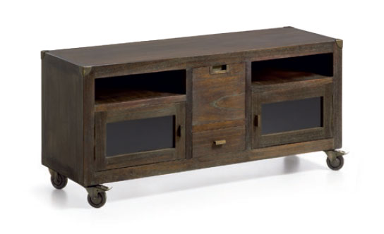El mueble industrial esta entrado con mucha fuerza en nuestro catalogo Web, esta semana queremos presentaros la nueva colección de mueble para salón de la serie Spartan, esta nueva entrada es un hibrido entre el mueble colonial actual y el mobiliario industrial, se fabrica en madera de mindi con un acabado nogal oscuro envejecido y se termina con adornos de metal como esquineras o ruedas de carro clásico, el salón que os presentamos en imágenes al pie combina la madera y el metal con un estilo decorativo actual y diferente, se puede emplear para decorar salones al completo o como piezas auxiliares para rincones específicos donde queramos romper con la decoración, podéis ver toda la colección en nuestra tienda de muebles online artesaniadecoracion.com.