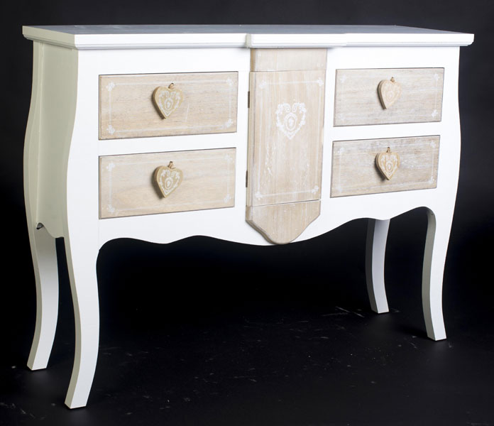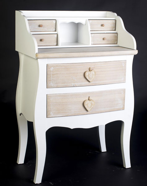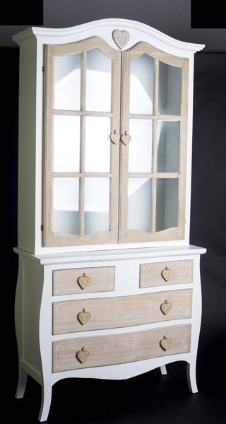 En los comienzos de este mes de Septiembre os informamos de una nueva colección de mobiliario bicolor en madera y blanco, la colección Pawlonia esta fabricada como su nombre indica en madera de Pawlonia y FDM, su terminación es en blanco hueso y para los cajones y puertas en madera natural con un suave decape en color blanco patinado, esta nueva colección consta de 13 piezas diferentes, contamos para el salón con vitrina, aparador, estantería, escritorio y mueble recibidor, también disponemos para el dormitorio de mesilla, cómoda, armario de 1 puerta y cajonera sinffonier, os adjuntamos 6 modelos en imágenes, para ver el resto de la colección visitar nuestra tienda de muebles online artesaniadecoracion.com.