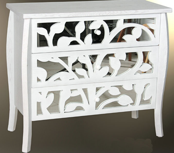 Siguiendo con la nuevas entradas a nuestro catálogo Web esta semana seleccionamos la colección Alverolda, esta nueva serie consta de 7 piezas de mueble auxiliar fabricadas en madera de abeto y FDM con incrustaciones de espejos en todos los cajones, para su terminación se aplica sobre la madera un tinte blanco semitrasparente que deja vislumbrar las vetas de la madera, en esta serie disponemos de cómoda, mesilla, recibidor, espejo y mueble TV, os adjuntamos 6 de los 7 modelos en imágenes al pie de este post, para ver el resto de la colección visitar nuestra tienda de mobiliario online artesaniadecoracion.com.