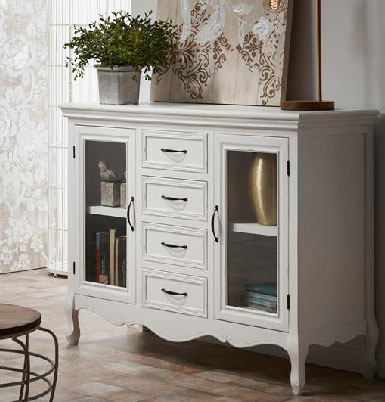 Para esta semana, de nuestra sección de muebles blancos hemos querido seleccionar la nueva colección para el salón Camille, esta nueva línea consta de 10 muebles auxiliares fabricados en madera de pino y FDM, para su terminación se pintan con acabado blanco decape, disponemos de 3 modelos de vitrinas en diferentes tamaños, una mesa para comedor en 180 cm, aparador buffet y un juego de mesas nido para rincón, os adjuntamos al pie de este post los diferentes modelos, para más información podéis visitar nuestra tienda de muebles online artesaniadecoracion.com.