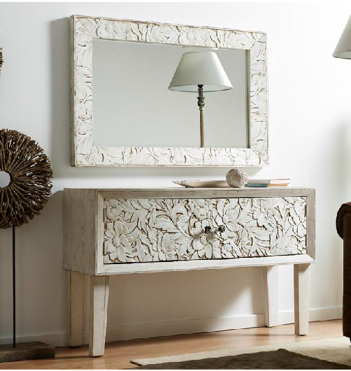 Siguiendo con las nuevas entrada a nuestra tienda online, esta semana hemos seleccionado para este post, la nueva colección de muebles tallados en blanco de la serie Andele, esta serie consta de 11 muebles auxiliares fabricados con armazón en madera de abeto y el resto en FDM, para su terminación se aplica un blanco rustico y se da una pátina de envejecido, la línea Andele tiene muebles para el dormitorio, el salón y consolas para el recibidor, os adjuntamos al pie de este post 6 modelos en imágenes, para ver toda la colección seguir el enlace a nuestra tienda de muebles online artesaniadecoracion.com.