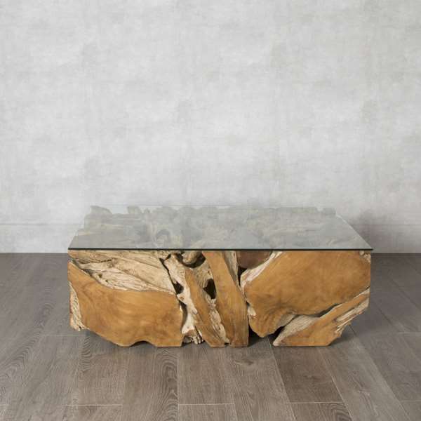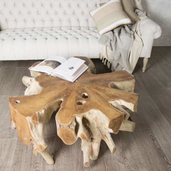 - Mesa Centro Grande Tronco Natural Teca Baleas