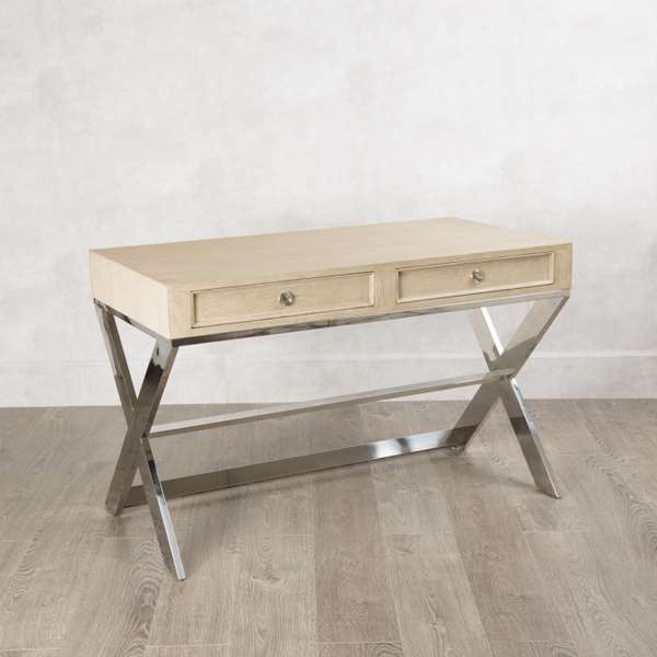 - Escritorio 2 Cajones Roble Macizo Patas Acero Daix