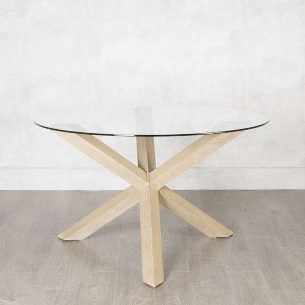- Mesa Redonda 2 Tamaños Cristal Madera Roble Haix