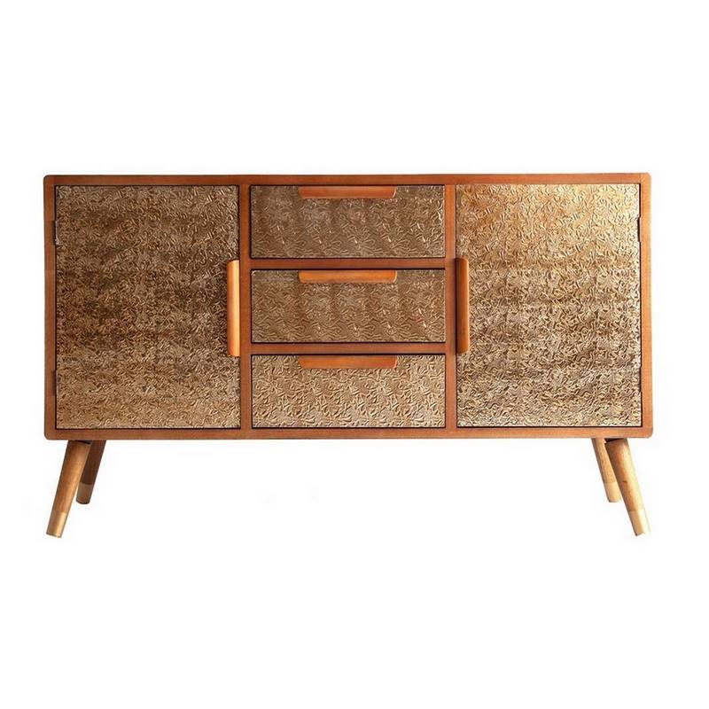 Siguiendo con las nuevas entradas a nuestra Web, esta semana os presentamos la nueva colección de muebles repujados de la serie Goldt, esta línea se fabrica con armazón en madera de pino natural combinado con fdm, se forra la madera de aluminio repujado con diseños florales, para su acabado se da un todo de oro al metal y un barniz natural a la madera, en esta serie contamos con 2 modelos de aparador, armario salón, mueble para la televisión y para el dormitorio de mesita de noche con 2 cajones, cómoda y espejo, la colección de muebles repujados da un toque clásico vintage a nuestra decoración, os adjuntamos las imágenes de 6 modelos al final de este post, para más información podéis visitar el enlace muebles repujados en nuestra tienda de muebles online artesaniadecoracion.com, recordar que en todos nuestros precios está incluido el IVA y los gastos de envió.