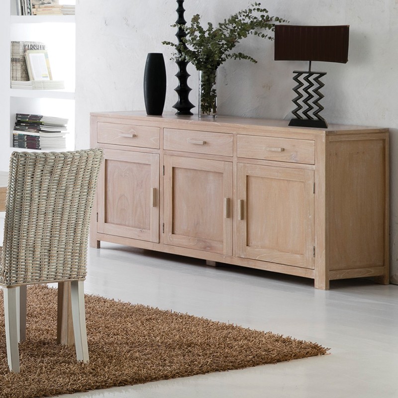 Para el post de esta semana hemos preparador un salón comedor de la serie Elisean, este comedor dispone de mesa, aparador y vitrina fabricados en madera de mindi con acabado natural y un suave glaseado en blanco decape, también dispone de 3 modelos de sillas y sillón a juego con esta colección, estas se fabrican con armazón en madera de mini natural y se terminan con tejido a mano de ratan natural y glaseado en blanco, os adjuntamos las imágenes de los 6 modelos mencionados, para más información visitar los enlaces a pie de cada imagen, recordaros que en nuestros precios está incluido el IVA y los gastos de envió.