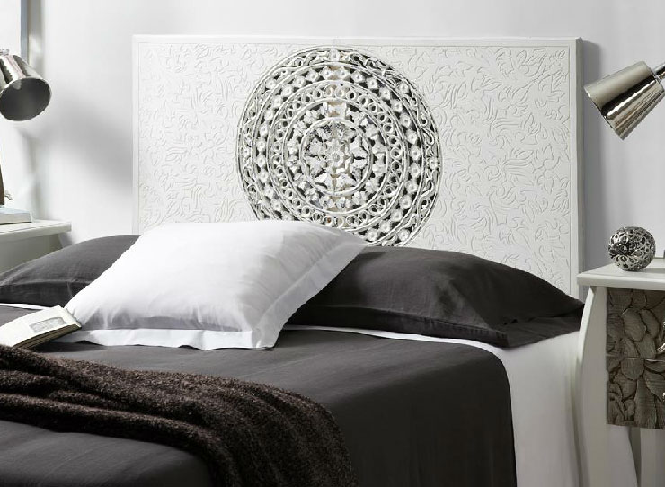 Para el post de esta semana seguimos con nuevas entradas a nuestro catálogo Web, hoy os presentamos la nueva colección de cabeceros tallados estilo oriental con dibujos de mándala, estos cabeceros se fabrican para camas de matrimonio en 150 cm, con base en tabla de fdm se talla con diseños ornamentales y se acaba con diferentes tonalidades, disponemos de modelos en color nogal, blanco oro, blanco decape y blanco con glaseado en plata, os adjuntamos 6 modelos en imágenes al final de este post, para más información podéis seguir los enlaces que figuran al pie de cada una de las imágenes, recodar que todos nuestros precios ya incluyen el IVA y los gastos de envió.