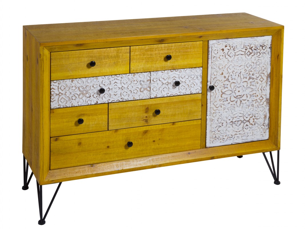 De nuestra sección de muebles actuales industriales, esta semana os presentamos la colección de muebles para el salón de la serie Naram, esta colección consta de 10 muebles para salón y dormitorio, se fabrican en madera de abeto laminada color miel, las puertas y los cajones son en fdm tallado color blanco decapado y las patas en acero color negro, os adjuntamos las imágenes de 6 modelos al final de este post, para más información podéis seguir los enlaces a pie de cada una de las imágenes.