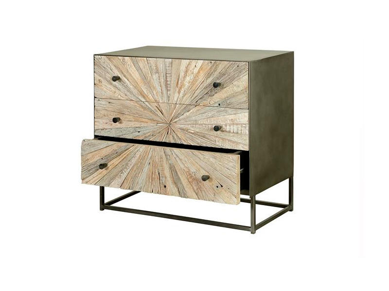 De nuestra sección en muebles industrial, esta semana os presentamos la nueva serie de muebles Chakra, esta línea disponemos de 7 muebles fabricados con el armazón en chapa de acero, patas en cuadradillo metálico y las puertas son en madera maciza reciclada cortada en tiras, disponemos en esta serie 2 aparadores, un mueble TV y vitrina almario para el salón, para el dormitorio disponemos de cómoda 3 cajones, sinfonier alto y mesita de noche, os adjuntamos las imágenes de 6 modelos al final de este post para más información visitar el enlace que figura al pie de cada imagen.