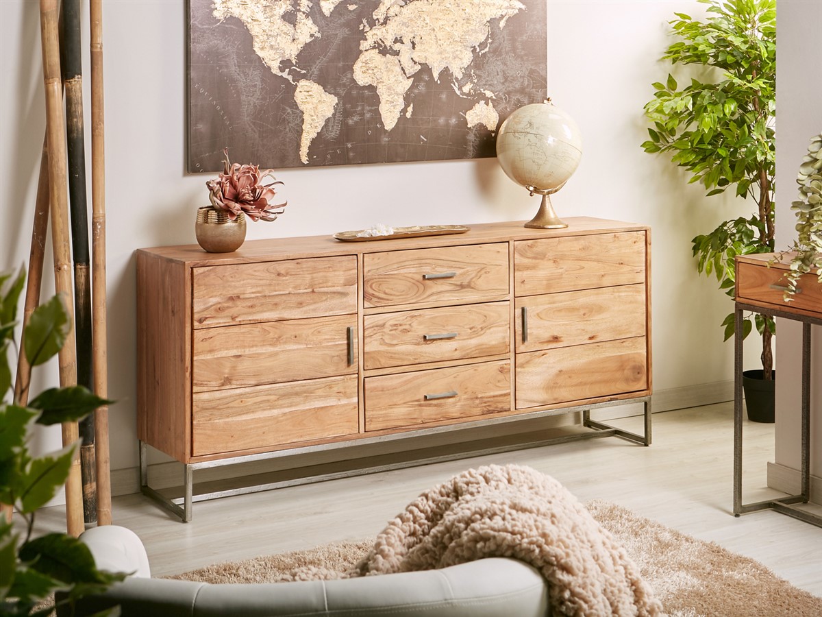 Para el post de esta semana, os presentamos la nueva colección Neith, esta nueva serie consta de 6 muebles para salón, recibidor y dormitorio, se fabrican con armazón en madera de acacia natural combinado con fdm, las patas son en cuadradillo de acero plata oxido, en esta sección disponemos de un aparador, librería estantería y mesa tv para el salón, una mesita y cómoda para el dormitorio, un mueble consola con 2 cajones para el recibidor, os adjuntamos las imágenes de toda la colección al final de este párrafo, para más información solo tenéis que seguir los enlaces de texto al pie de cada una de las imágenes, recordar que en nuestros precios incluimos el IVA y los gastos de envió para península y Baleares.
