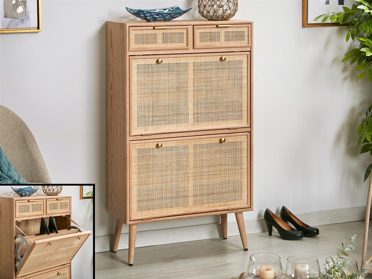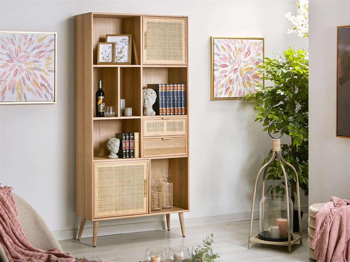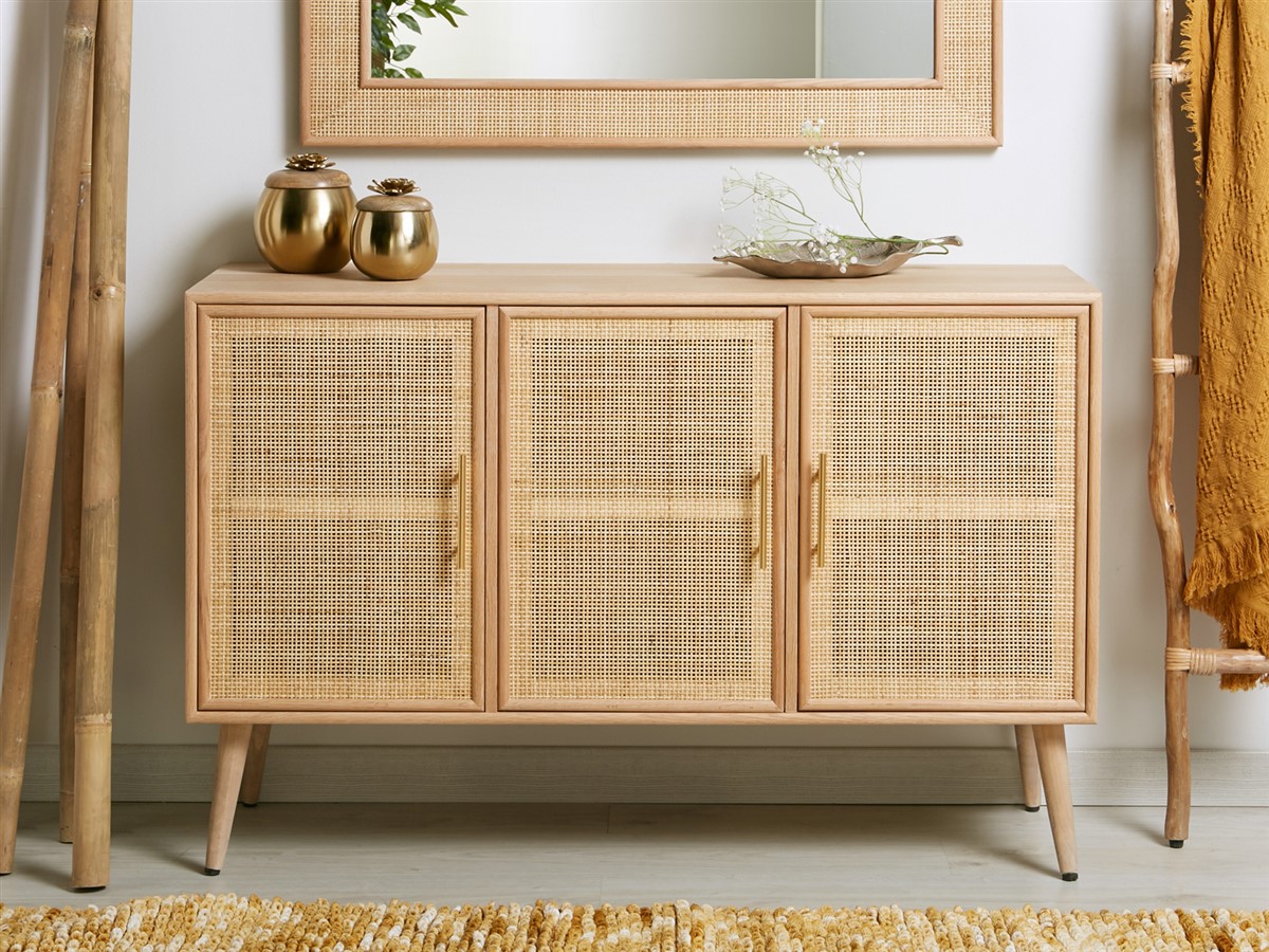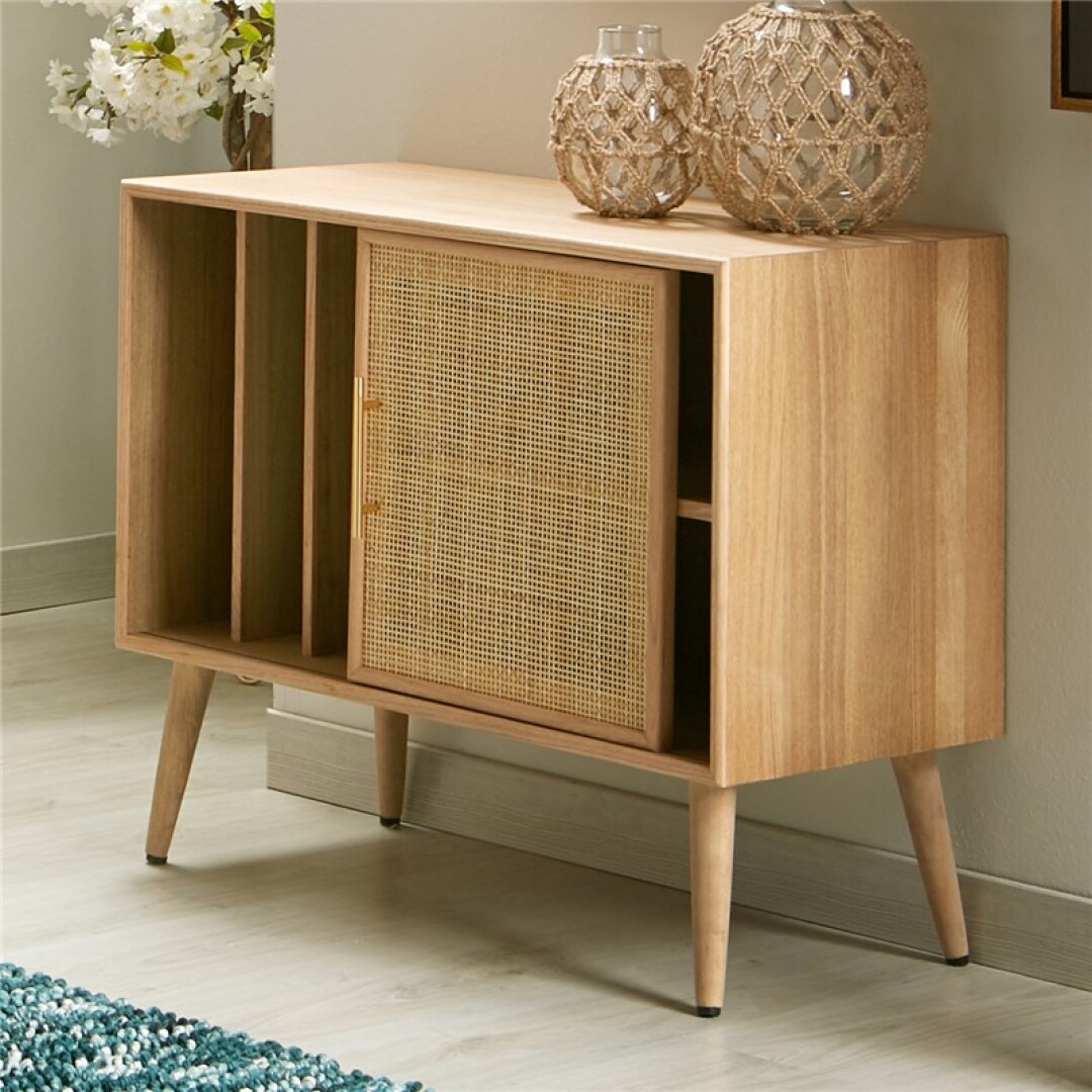 De nuestra sección en muebles actuales y contemporáneo, esta semana os presentamos la serie Sayumi, esta línea dispone de 11 muebles para salón, recibidor y dormitorio fabricados con armazón en madera de abeto y fdm, acabado en color natural, las puertas y cajones son forrados en rejilla natural, disponemos de aparadores, vitrinas y librerías para el salón, mesillas noche, cómodas y sinfonier para el dormitorio y recibidores, zapateros y espejos para el recibidor, os adjuntamos las imágenes de los modelos más destacados al final de este post, para ampliar información podéis seguir los enlaces al pie de cada imagen.
