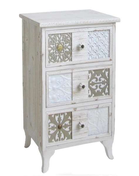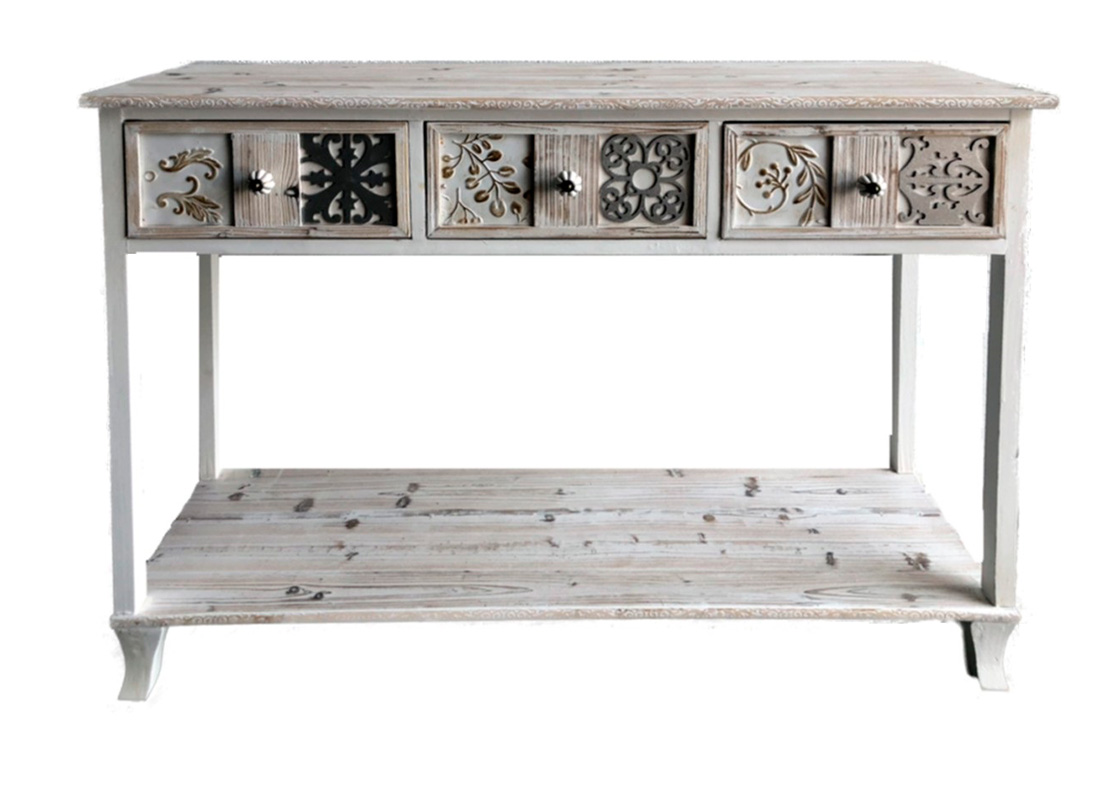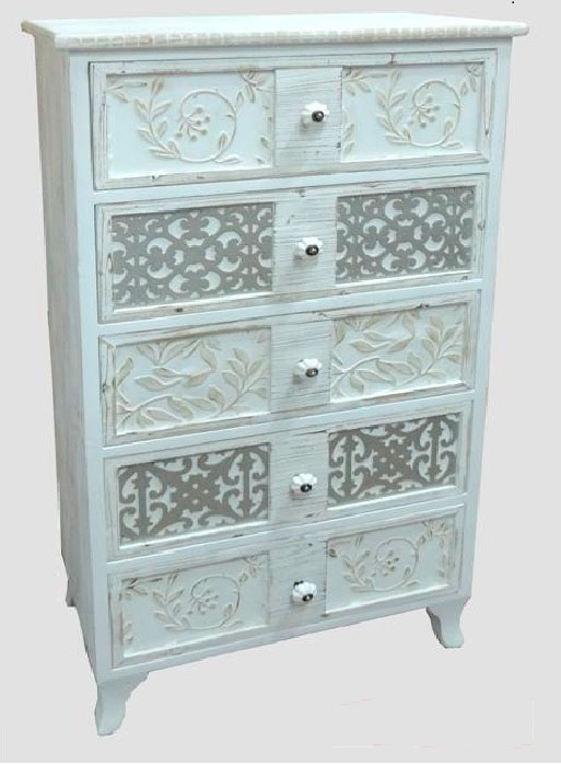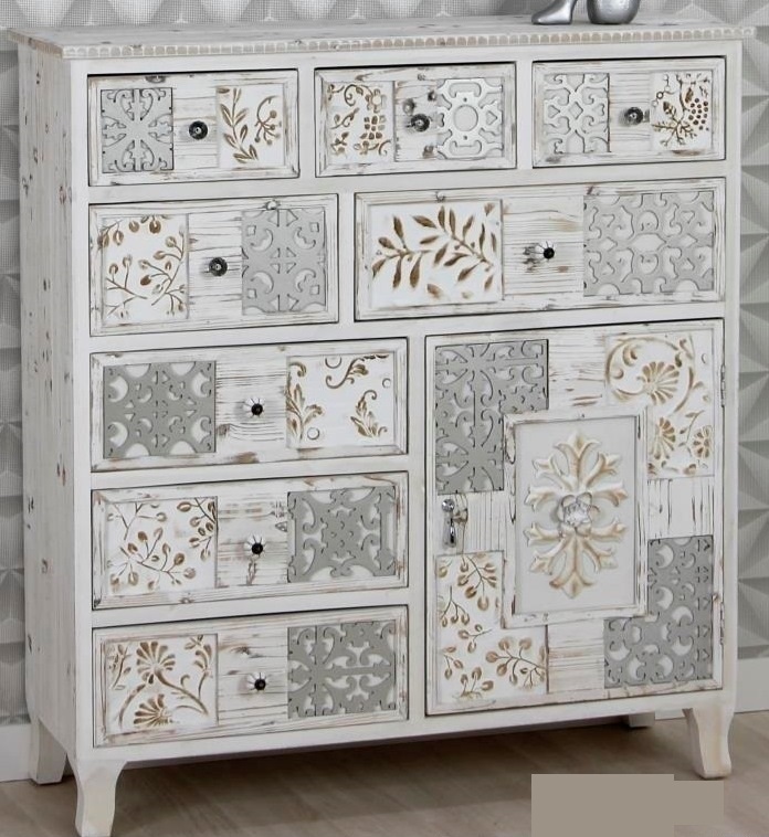Siguiendo con las nuevas entradas a nuestro catálogo Web, esta semana os presentamos la colección Angaran, dispone de 14 muebles para salón dormitorio y recibidor, se fabrican en madera de abeto combinado con fdm acabado decape blanco, los cajones y puertas vienen decorados con diseños forales y ornamentos metálicos en color, os adjuntamos las imágenes de 6 modelos al final de este post, para más información podéis seguir los enlaces de testo al pie de cada imagen, recordar en nuestros precios está incluido el IVA y los gastos de envió.