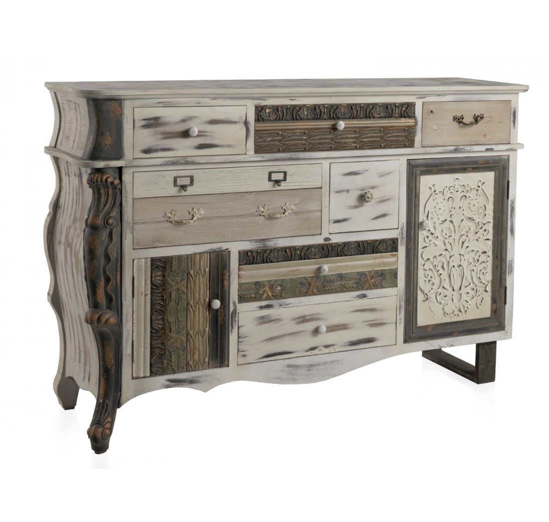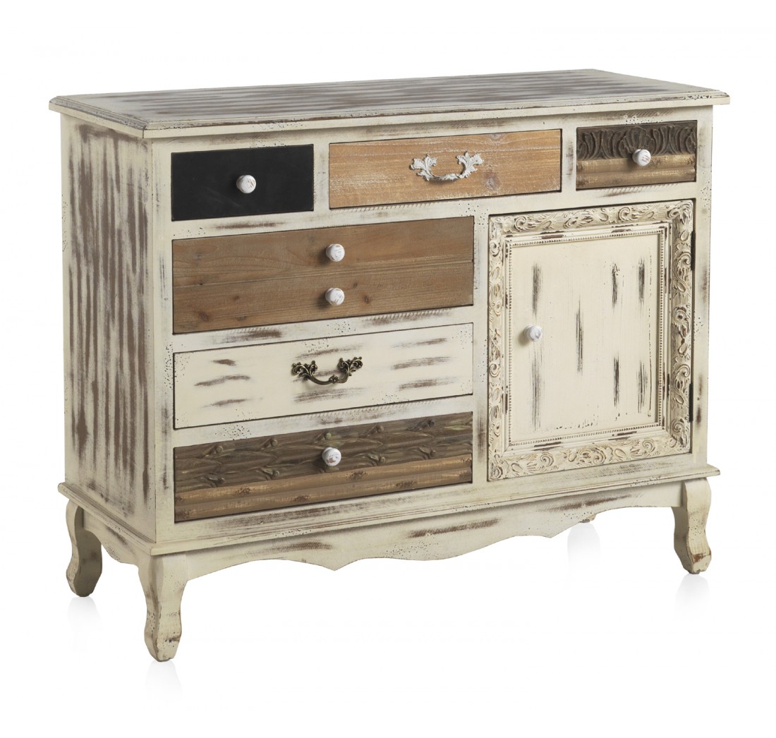 Para el post de esta semana, hemos seleccionado una nueva colección de muebles rústicos industriales serie Galios, esta línea dispone de 6 muebles fabricados en madera de abeto y fdm con acabados de base en blanco decapado y decoración en colores desgastados, los tiradores son de metal y madera en formato caos con diferentes colores y formas, os adjuntamos las imágenes de esta colección a final de este post, para más información sobre medidas y precios podéis seguir el enlace de texto al pie de cada imagen, recordar en nuestros precios está incluido el IVA y los gastos de envió.
