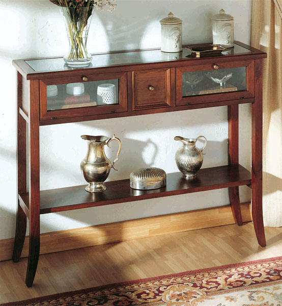 De nuestra sección en muebles para el recibidor, esta semana os presentamos la colección vintage, esta serie se fabrica en madera de mindi y abeto, se terminan en color nogal o avellana, disponemos de modelos tallados, modelos con formas y modelos expositor, os adjuntamos las imágenes de los 6 recibidores más destacados, para ampliar información podéis seguir los enlaces de texto al pie de cada imagen.