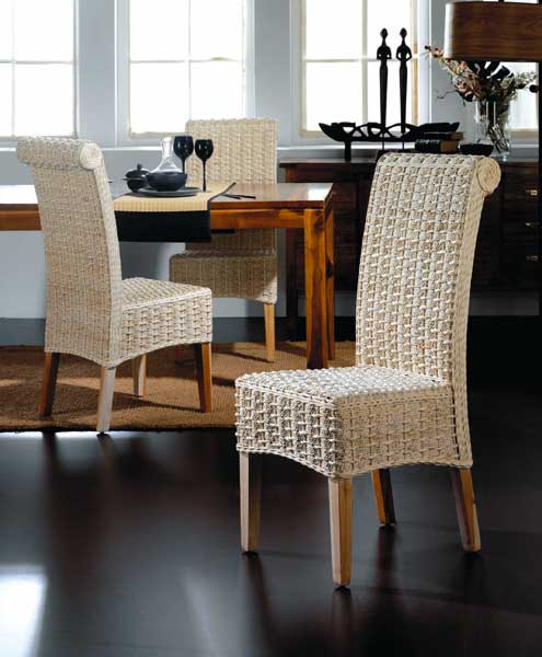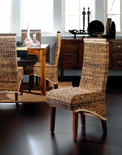 De nuestra sección en sillas para el salón comedor, esta semana os presentamos la colección de sillas en fibras vegetales, es esta serie disponemos de 27 modelos diferentes, se fabrican con armazón en madera maciza de teca o rattan, se tejen a mano artesanalmente con fibras vegetales como el junco, el abaca, algas, medula y mimbre, os adjuntamos 6 modelos en imágenes, para ampliar la información podéis seguir los enlaces de texto al pie de cada imagen, recordar en nuestros precios está incluido el IVA y los gastos de envió.