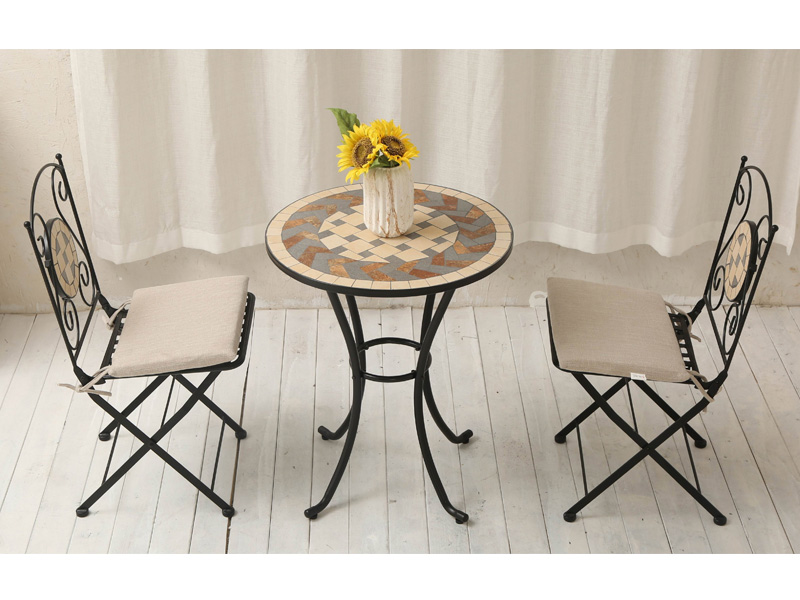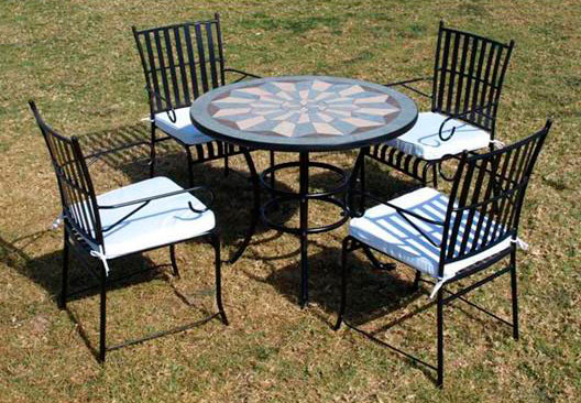 Mesa de 120 y 4 sillas para terraza jardin metalicas con mosaico